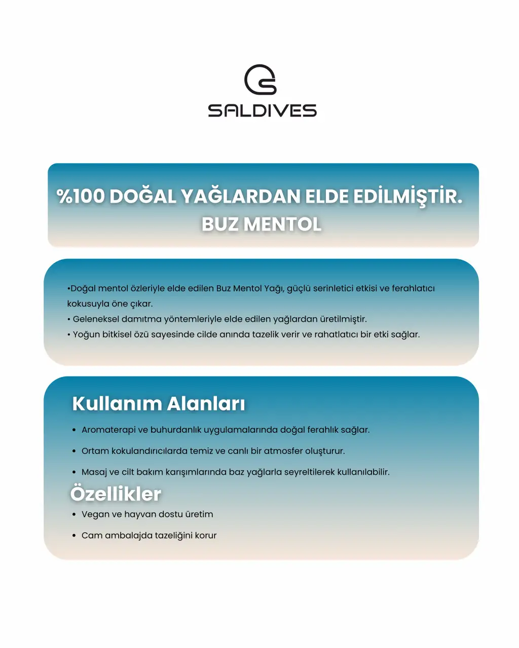 Saldives Buz Mentol 20 ml, doğal ve ferahlatıcı bir masaj yağıdır.