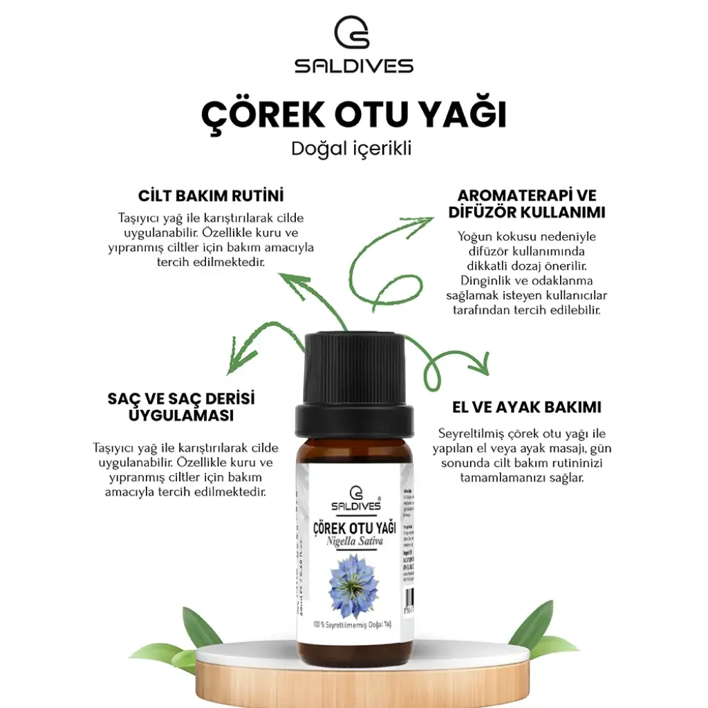 Saldives Çörek Otu Yağı 20 ml, cildiniz için doğal bir destek sunar. İşte bu ürünün özellikleri: