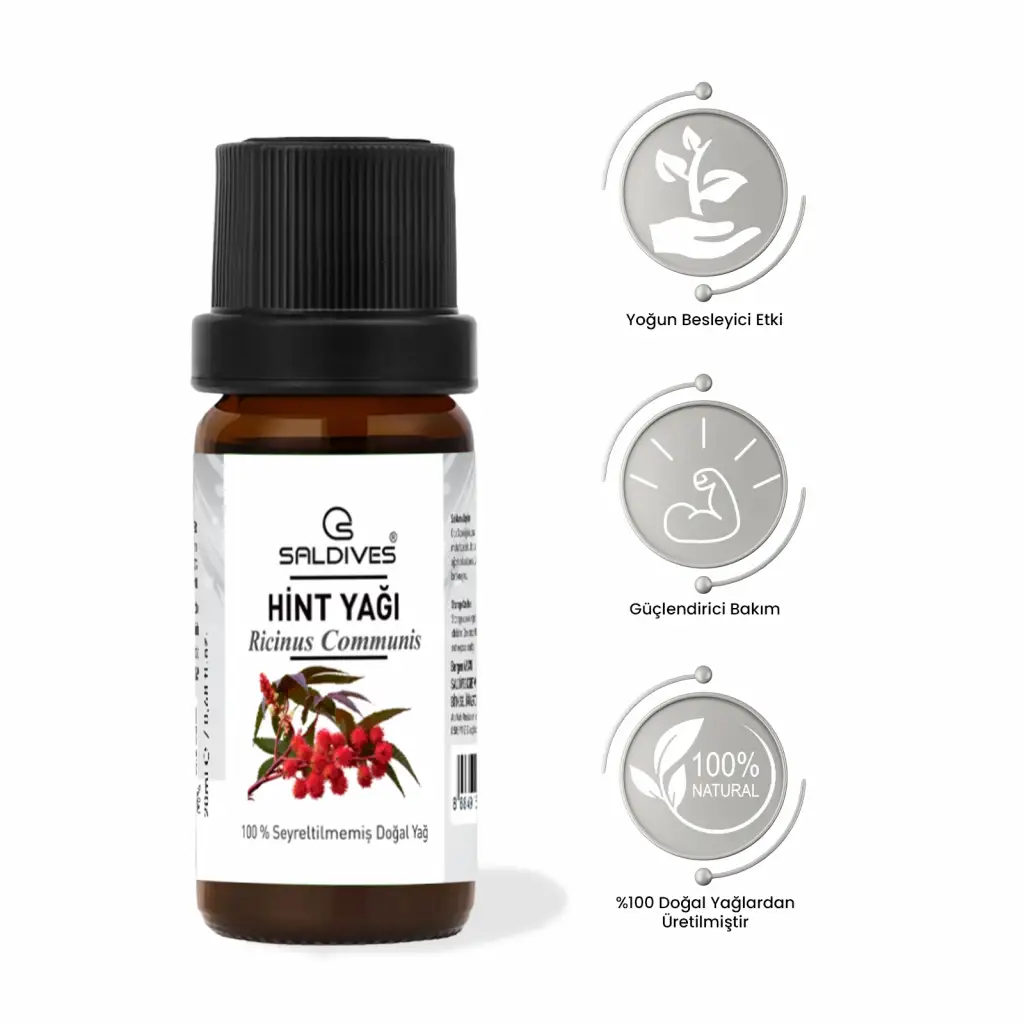 Saldives Hint Yağı, hint bitkisinin tohumlarından elde edilen yoğun ve besleyici yapısıyla saç, kaş, kirpik ve cilt bakımında kullanıma uygundur. Doğal bakım rutinlerini destekler.