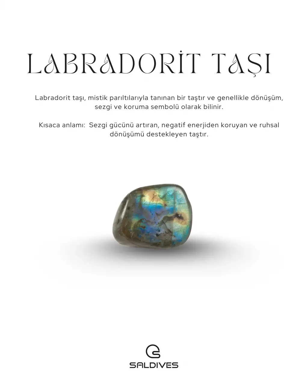 Saldives Labrodonit Doğaltaş Kolye ile kendinizi özel ve şık hissedin. Bu benzersiz parça, günlük kullanımınızda veya özel günlerde tarzınıza zarafet katacaktır.